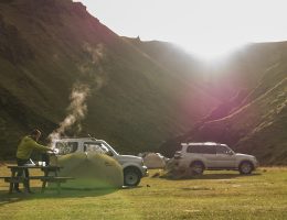 To dopiero trzeci dzień a dzieje się tyle, że mamy taką ilość wrażeń jakbyśmy byli tu już od dłuższego czasu. Poranek przywitał nas deszczem, który w ogóle nie chciał przestać padać. Skłoniło to nas do wymyślenia zupełnie nowego sposobu zwijania namiotu. Jest to iście kuglarska sztuczka, dzięki której jako jedyni z kempingu spakowaliśmy suchy namiot 😉 Szczegółową instrukcję podamy na końcu wyprawy. Na chwilę obecną powiemy tylko, że potrzebna jest plandeka oraz wcielenie jednego z nas w rolę…