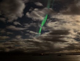 Choć była to najsilniejsza zorza jaką kiedykolwiek widzieliśmy, to fotografować się tego za bardzo nie dało.Większość rzeczy działa się w małej dziurze w chmurach dokładnie nad naszymi głowami. Widzieliśmy za to nowy kolor – fioletowy i kilka minut “prążkowych” ruchów. Wracamy na północ na Fiordy Zachodnie. Prognozy są na pełne zachmurzenie i deszcz, ale skoro tu się nie sprawdziły, to może tam się uda “wpaść” w jakąś większą dziurę 😉